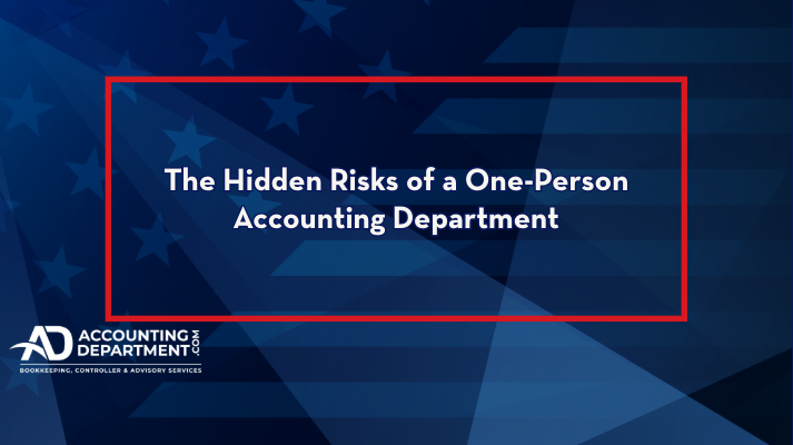 AccountingDepartment.com carries professional liability (E&O) Insurance and employee dishonesty coverage. AccountingDepartment.com provides accounting services, bookkeeping services, and controller services, as well as advisory services, to businesses nationwide. We do not provide tax services, including but not limited to tax preparation, tax law, tax compliance, tax filing, and tax planning services. Please consult your CPA and tax advisors for tax consulting.